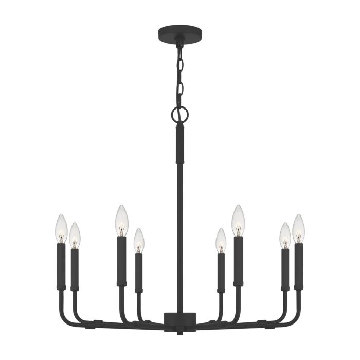 This 8-Light Chandelier from Quoizel is part of the Abner collection. It comes in a Matte Black finish.- Measures 26.00" H x 28.00" L x 28.00" W