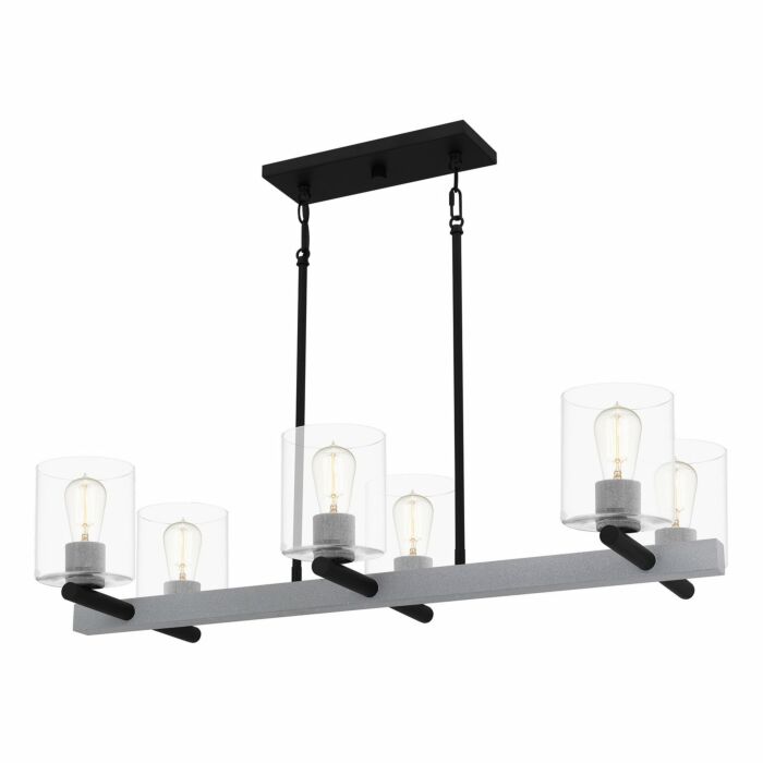 This 6-Light Linear Chandelier from Quoizel is part of the Caldwell collection. It comes in a Matte Black finish.- Measures 8.00" H x 16.00" L x 38.00" W