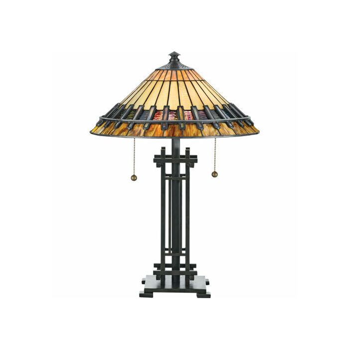 This lamp is a tribute to the timeless Arts and Crafts movement, characterized by its use of clean, straightforward lines that create a geometric aesthetic featuring squares and rectangles. The intricately crafted shade showcases exceptional craftsmanship and dedication to quality, adhering to the traditional standards of this revered design style. The accompanying base boasts an authentic, richly textured bronze finish that adds a sophisticated touch to the overall design.