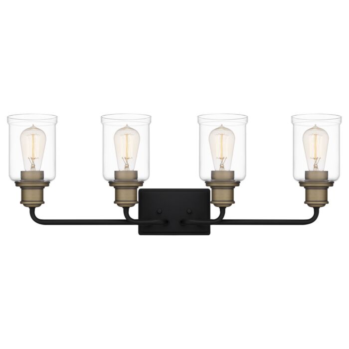 This 4-Light Bathroom Vanity Light from Quoizel is part of the Cox collection. It comes in a Matte Black finish.- Measures 10.50" H x 29.00" W