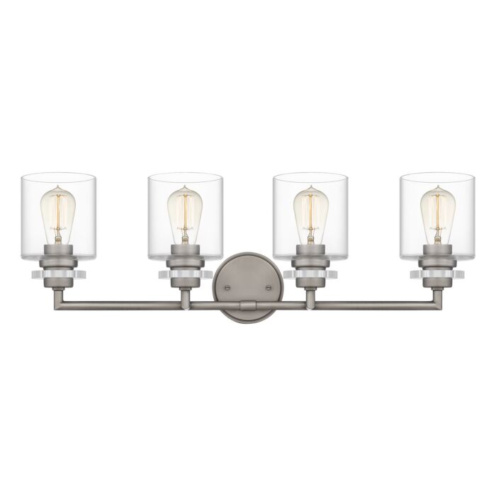 This 4-Light Bath from Quoizel is part of the Jaspar collection. It comes in a Antique Nickel finish.- ETL certified.