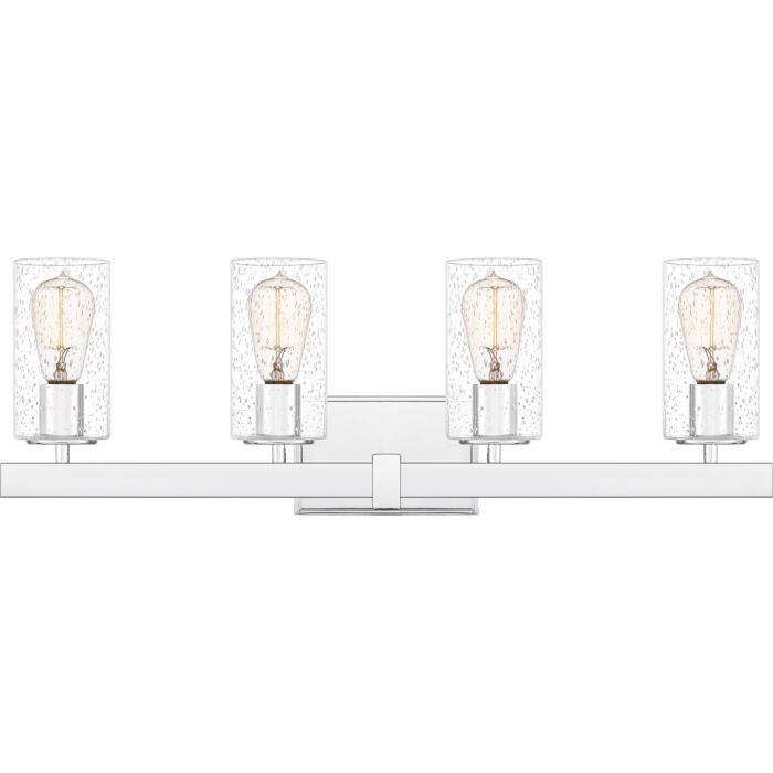 This 4-Light Bathroom Vanity Light from Quoizel is part of the Kirby collection. It comes in a Polished Chrome finish.- Measures 9.50" H x 27.75" W