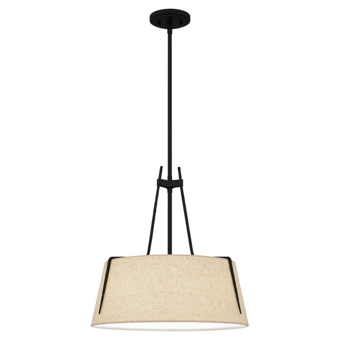 This 3-Light Pendant from Quoizel is part of the Leona collection. It comes in a Matte Black finish.- Measures 19.00" H x 18.00" L x 18.00" W