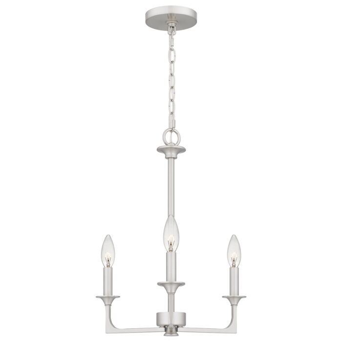 This 3-Light Chandelier from Quoizel is part of the Prescott collection. It comes in a Brushed Nickel finish.- Measures 20.00" H x 16.00" L x 16.00" W