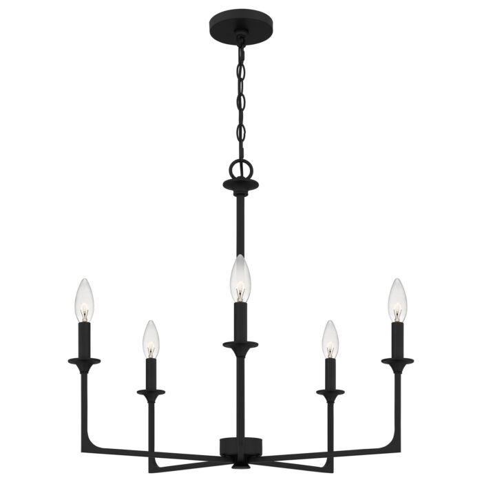 This 5-Light Chandelier from Quoizel is part of the Prescott collection. It comes in a Matte Black finish.- Measures 24.00" H x 26.00" L x 26.00" W