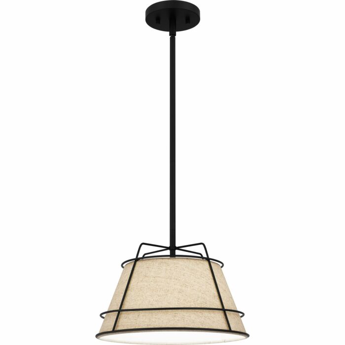 This Quoizel Piccolo Pendant from Quoizel Lighting comes in a Matte Black finish.Dry Rated. Can be used in dry environments like living rooms or bedrooms 10.25 H 13.00" W 13.00" L Bulb Type MED BASE A19 Bulb Qty 1 Base Finish MBK - Matte Black ShadeType N/A Item Weight 5.00 Product Specification Sheet