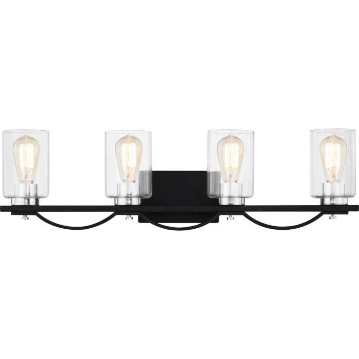 This 4-Light Bathroom Vanity Light from Quoizel is part of the Salem collection. It comes in a Matte Black finish.- Measures 8.75" H x 30.00" W