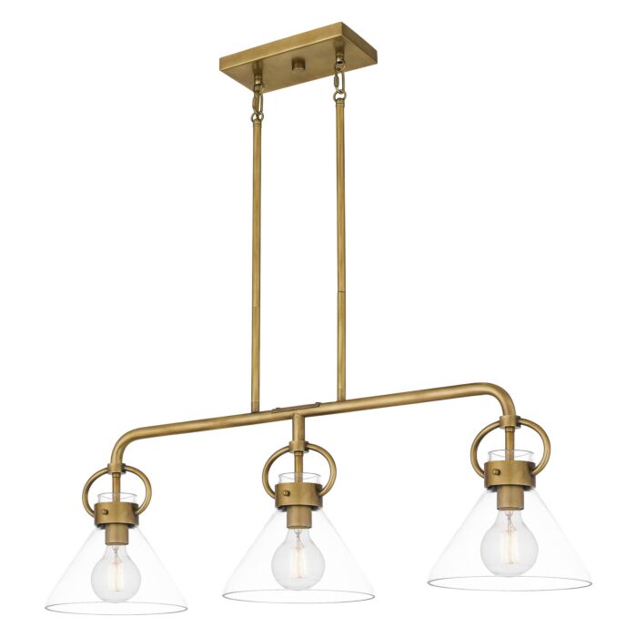 This 3-Light Linear Chandelier from Quoizel is part of the Webster collection. It comes in a Weathered Brass finish.- Measures 12.00" H x 9.00" L x 36.00" W