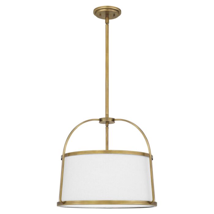 This 4-Light Pendant from Quoizel is part of the York collection. It comes in a Weathered Brass finish.- Measures 17.25" H x 20.00" L x 20.00" W