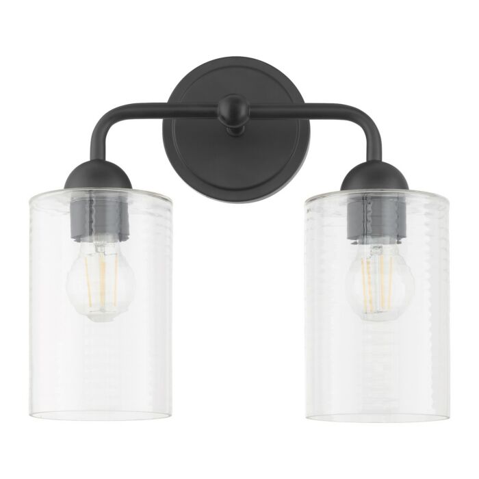 This Charlotte 2-Light Bathroom Vanity Light in Matte Black is manufacturered by Quorum International- Measures 12.75"H x 13.75" W