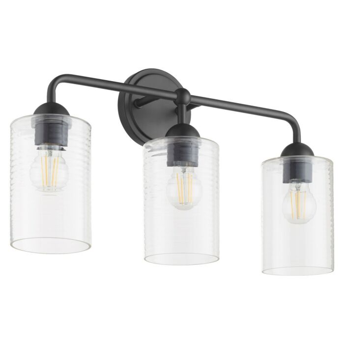 This Charlotte 3-Light Bathroom Vanity Light in Matte Black is manufacturered by Quorum International- Measures 12.75"H x 23.5 W