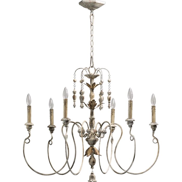 This Salento 6-Light Chandelier in Persian White is manufacturered by Quorum International- Measures 28"H x 32.00" W