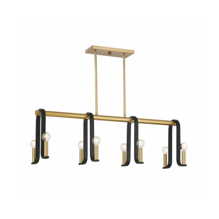 Archway 8-Light Linear Chandelier in Matte Black with Warm Brass Accents