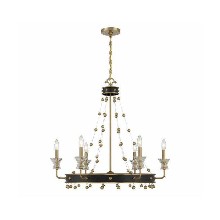 This Savoy House Iris 6-light chandelier offers up a wonderfully whimsical look with bold crystal bobeches, strands of metal beads and a two-tone finish of warm brass and black.- Iris is 29 in height and 31.50 in width.