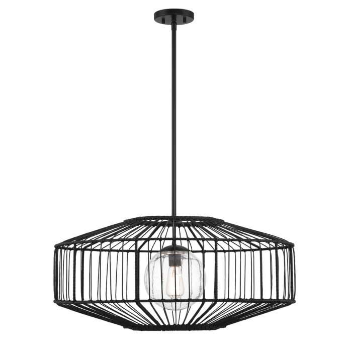 Introducing the Marcy 1-Light Pendant from Savoy House.- Made from Metal, Rattan Resin, Glass, this Pendant comes in a Matte Black finish.