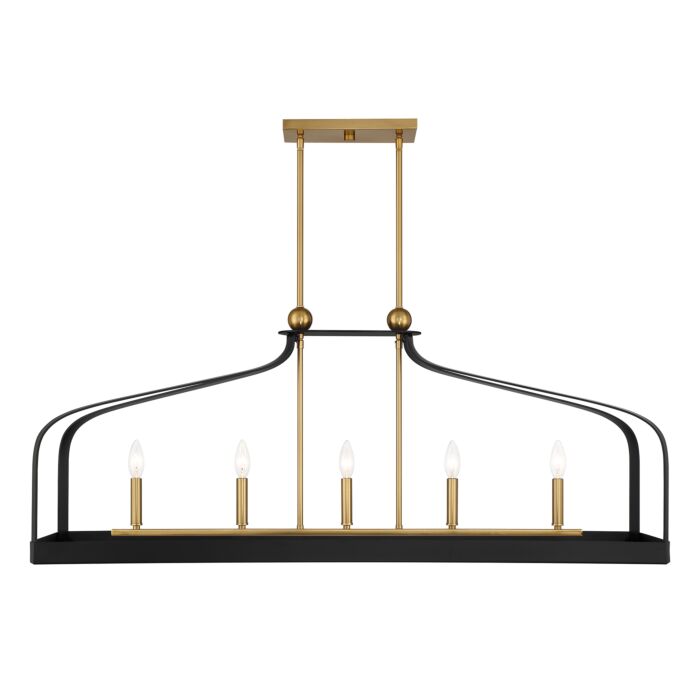 Sheffield Five Light Linear Chandelier in Matte Blackith Warm Brass Accents by Savoy House