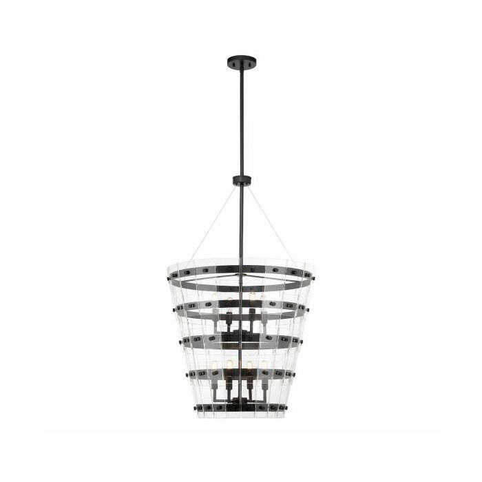 This Savoy House Ventari 8-light pendant is beautifully elegant in its simplicity.- Its structure is adorned with slats of clear glass, finished in matte black and appears to be suspended in midair.