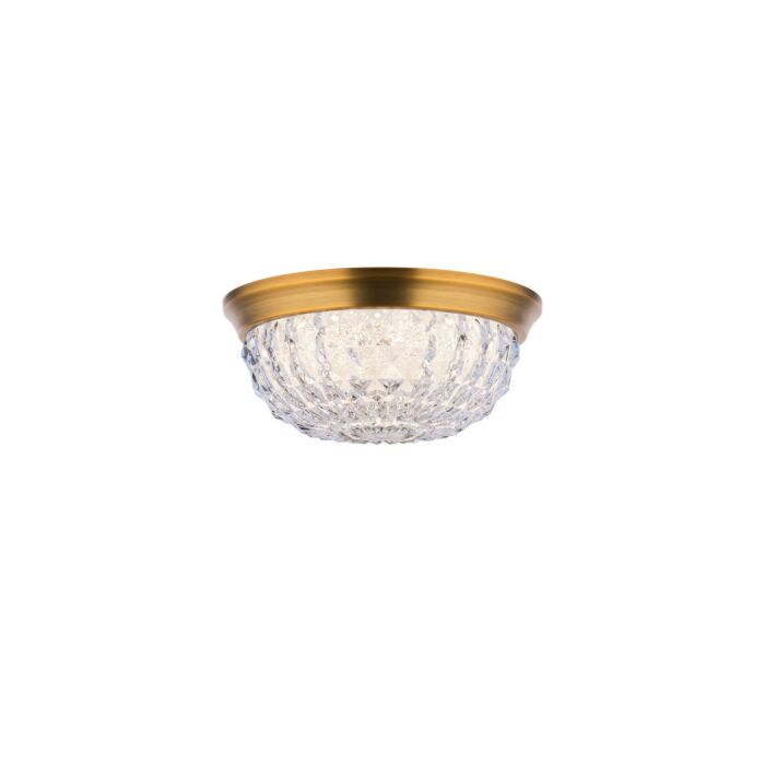 This Genoa 1-Light LED Flush Mount Ceiling Light in Aged Brass is manufacturered by Schonbek- Measures 4"H x 9.00" L x 9.00" W