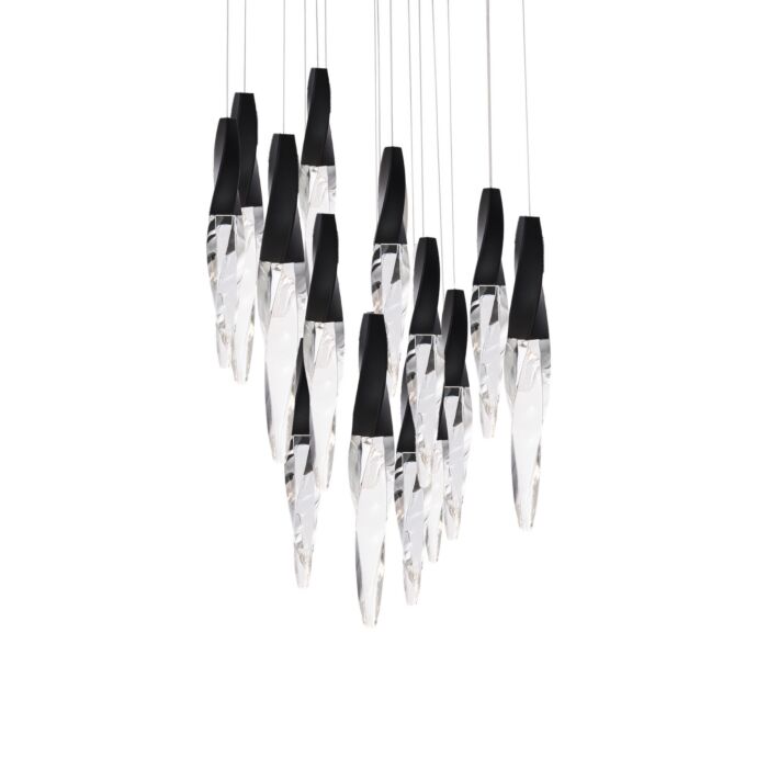This Kindjal 15-Light LED Pendant in Black is manufacturered by Schonbek- Measures 20"H x 23.00" L x 23.00" W