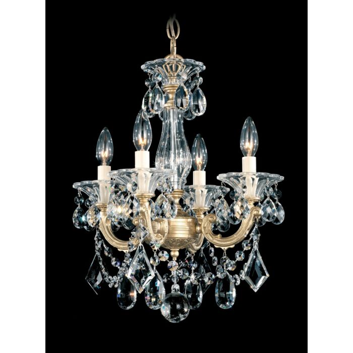 This La Scala 4-Light Chandelier in French Gold is manufacturered by Schonbek- Measures 18"H x 14.50" L x 14.50" W