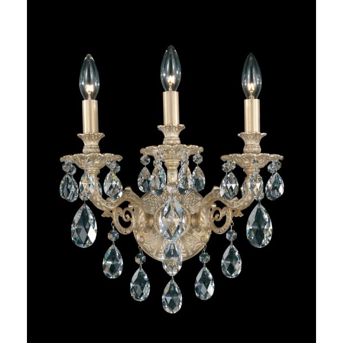 This Milano 3-Light Wall Sconce in Florentine Bronze is manufacturered by Schonbek- Measures 15"H x 13.00" L x 13.00" W
