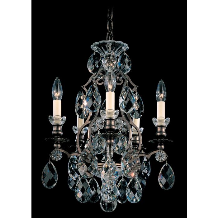 This Renaissance 5-Light Chandelier in Black is manufacturered by Schonbek- Measures 19"H x 14.50" L x 14.50" W