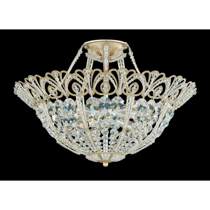 This Rivendell 6-Light Semi-Flush Mount Ceiling Light in French Gold is manufacturered by Schonbek- Measures 13.5"H x 20.00" L x 20.00" W