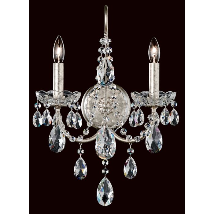 This Sonatina 2-Light Wall Sconce in Silver is manufacturered by Schonbek- Measures 17"H x 12.50" L x 12.50" W