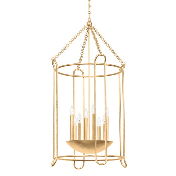 The Lassen 8 Light Lantern from Troy Lighting comes in a Vintage Gold Leaf finish.- It measures 48 high.
