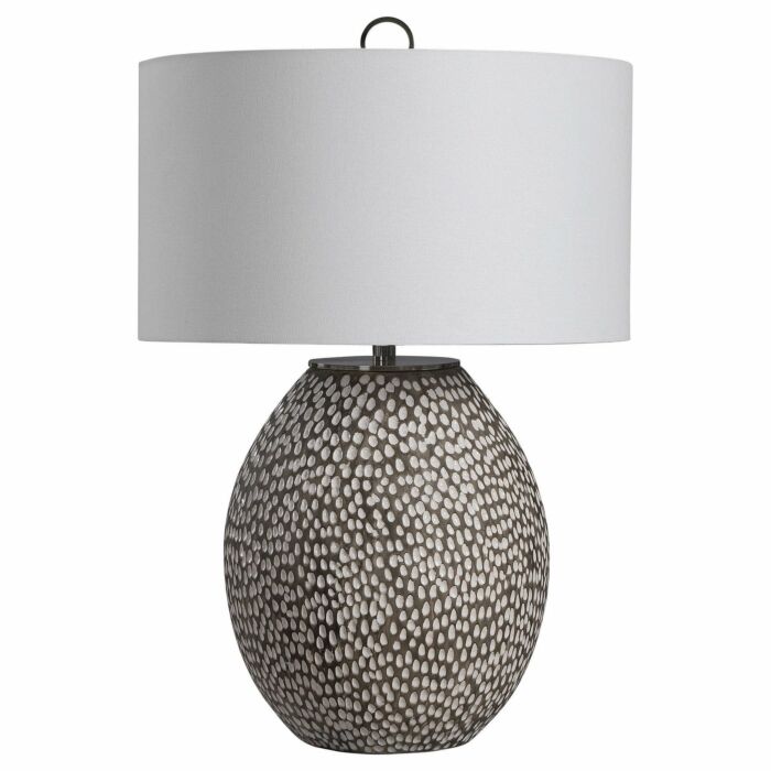 This Cyprien 1-Light Table Lamp in Brushed Nickel is manufacturered by Uttermost- Measures 27.25"H x 18.0 L x 18.00" W