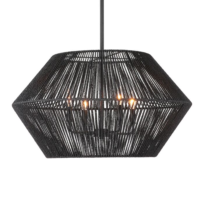 Natural Rope Is Hand Wrapped And Dyed A Chic Black To Form The Shade Of Our 4 Lt Pendant Giving Both An Adventurous & Dressed Up Feel In Matte Black. 4-60 Watt Max Candelabra Sockets. Bulbs Not Included. Supplied With 15' Wire, 3-12" Stems And 1-6" Stem For Adjustable Installation.- Uttermost's Light Fixtures Combine Premium Quality Materials With Unique High-style Design.