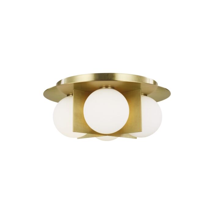 This 4-Light LED Flush Mount from Visual Comfort Modern is part of the Orbel collection. It comes in a Aged Brass finish.- ETL certified.