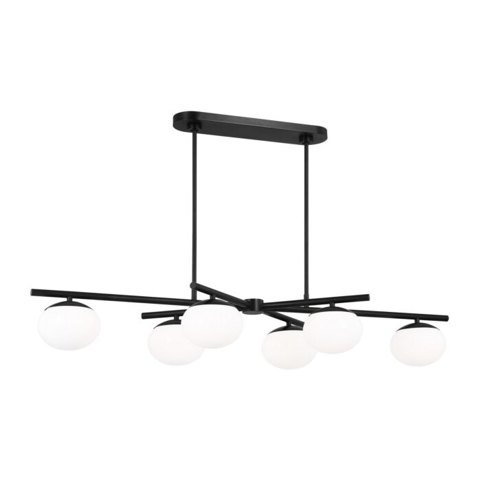 This Lune 6-Light Linear Chandelier in Aged Iron is manufacturered by Visual Comfort Studio- Measures 7.63"H x 18.0 L x 49.63" W