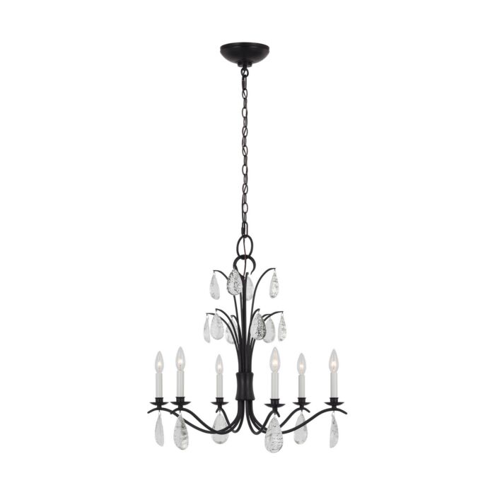 This Shannon 6-Light Chandelier in Aged Iron is manufacturered by Visual Comfort Studio- Measures 27"H x 26.00" W