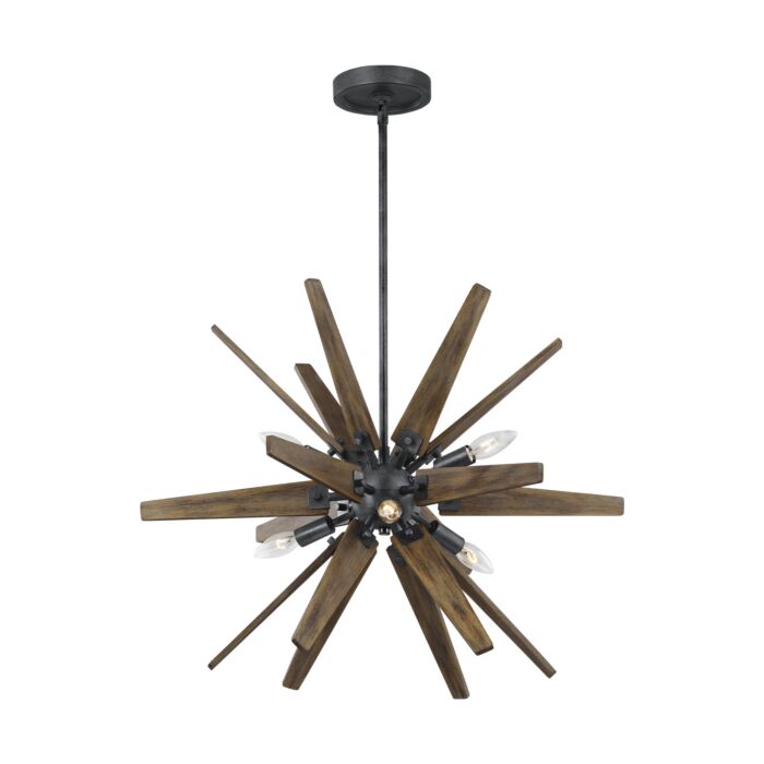 Thorne Six Light Chandelier in Dark Weathered Zinc Weathered Oak by Visual Comfort Studio