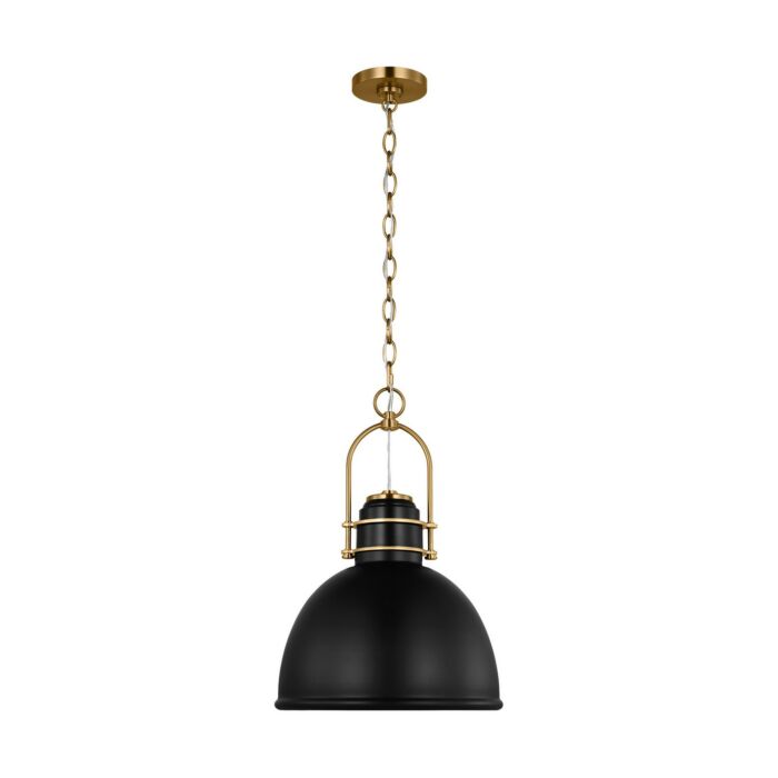 Upland One Light Pendant in Midnight Black and Burnished Brass by Visual Comfort Studio
