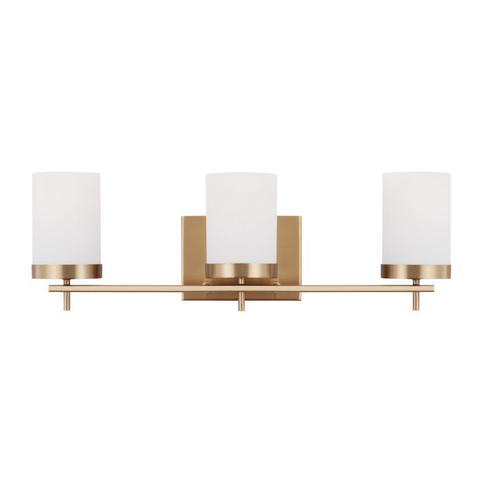 This Zire 3-Light Bathroom Vanity Light in Satin Brass is manufacturered by Visual Comfort Studio- Measures 7.88"H x 24.0 W