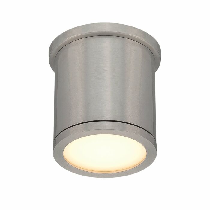 This Tube 1-Light LED Flush Mount Ceiling Light in Brushed Aluminum is manufacturered by WAC Lighting- Measures 4.5"H x 5.00" L x 5.00" W
