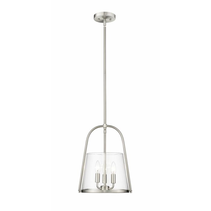 This 3-Light Pendant in Brushed Nickel comes from Z-Lite and is a part of the Archis collection.It measures 16" high x 12" wide. This light uses 3 Candelabra bulb(s). Dry rated. Can be used in dry environments like living rooms or bedrooms.