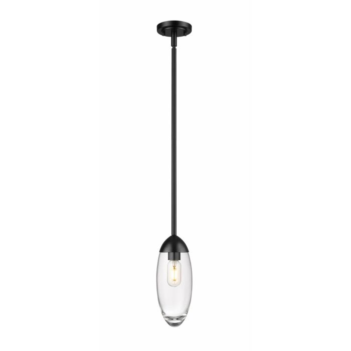 This 1-Light Pendant in Matte Black comes from Z-Lite and is a part of the Arden collection.It measures 12" high x 4" wide. This light uses 1 Medium bulb(s). Dry rated. Can be used in dry environments like living rooms or bedrooms.
