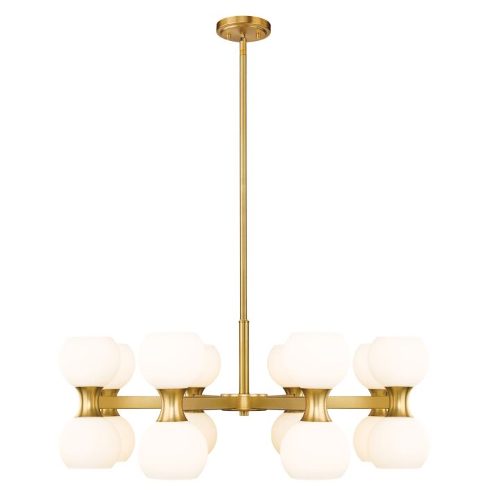 This 16-Light Chandelier in Modern Gold comes from Z-Lite and is a part of the Artemis collection.It measures 12" high x 32" wide. This light uses 16 Candelabra bulb(s). Dry rated. Can be used in dry environments like living rooms or bedrooms.