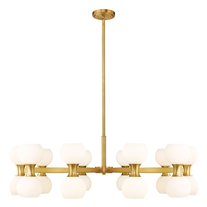 This 20-Light Chandelier in Modern Gold comes from Z-Lite and is a part of the Artemis collection.It measures 12" high x 42" wide. This light uses 20 Candelabra bulb(s). Dry rated. Can be used in dry environments like living rooms or bedrooms.