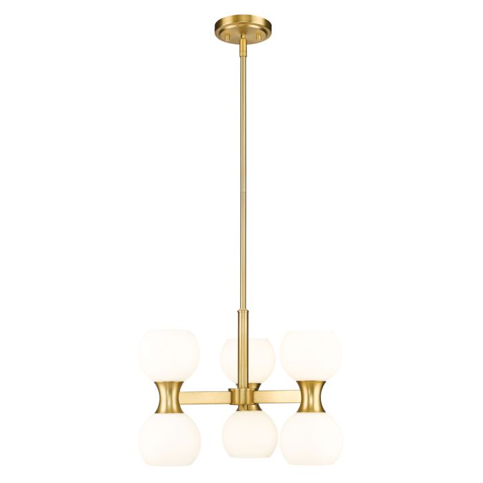 This 6-Light Chandelier in Modern Gold comes from Z-Lite and is a part of the Artemis collection.It measures 12" high x 18" wide. This light uses 6 Candelabra bulb(s). Dry rated. Can be used in dry environments like living rooms or bedrooms.