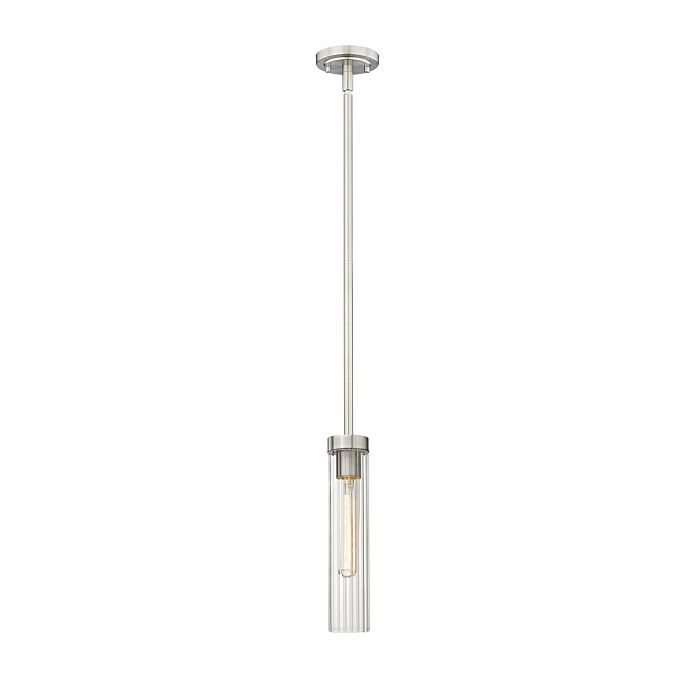 This 1-Light Pendant in Brushed Nickel comes from Z-Lite and is a part of the Beau collection.It measures 12" high x 8" wide. This light uses 1 Medium bulb(s). Damp rated. Can be used in humid environments like bathrooms or covered outdoor areas.