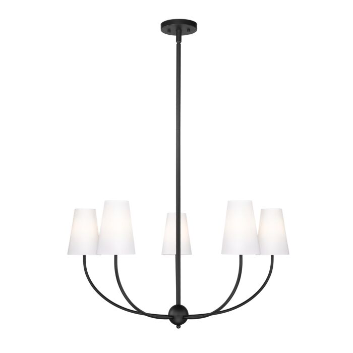 This 5-Light Chandelier in Matte Black comes from Z-Lite and is a part of the Shannon collection.It measures 16" high x 32" wide. This light uses 5 Candelabra bulb(s). Dry rated. Can be used in dry environments like living rooms or bedrooms.