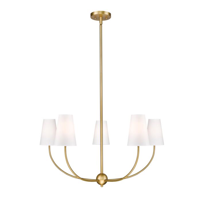 This 5-Light Chandelier in Rubbed Brass comes from Z-Lite and is a part of the Shannon collection.It measures 16" high x 32" wide. This light uses 5 Candelabra bulb(s). Dry rated. Can be used in dry environments like living rooms or bedrooms.