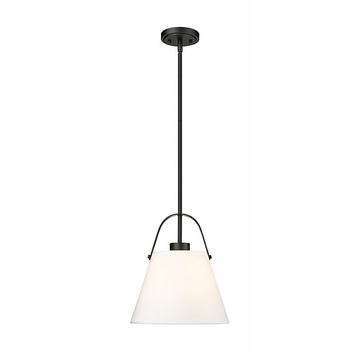 This 1-Light Pendant in Matte Black comes from Z-Lite and is a part of the Z-Studio Linen Pendant collection.It measures 14" high x 12" wide. This light uses 1 Medium bulb(s). Dry rated. Can be used in dry environments like living rooms or bedrooms.